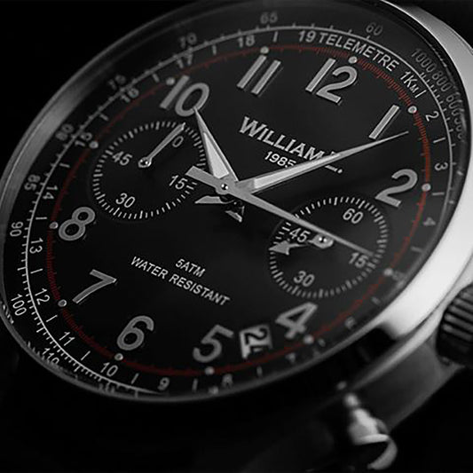 William L. 1985 | Vintage Style Chronograph - IP Black Dial & Black ‘Croco’ Strap
