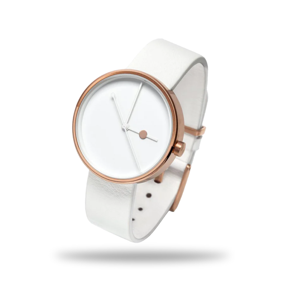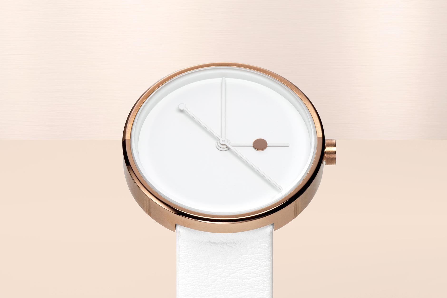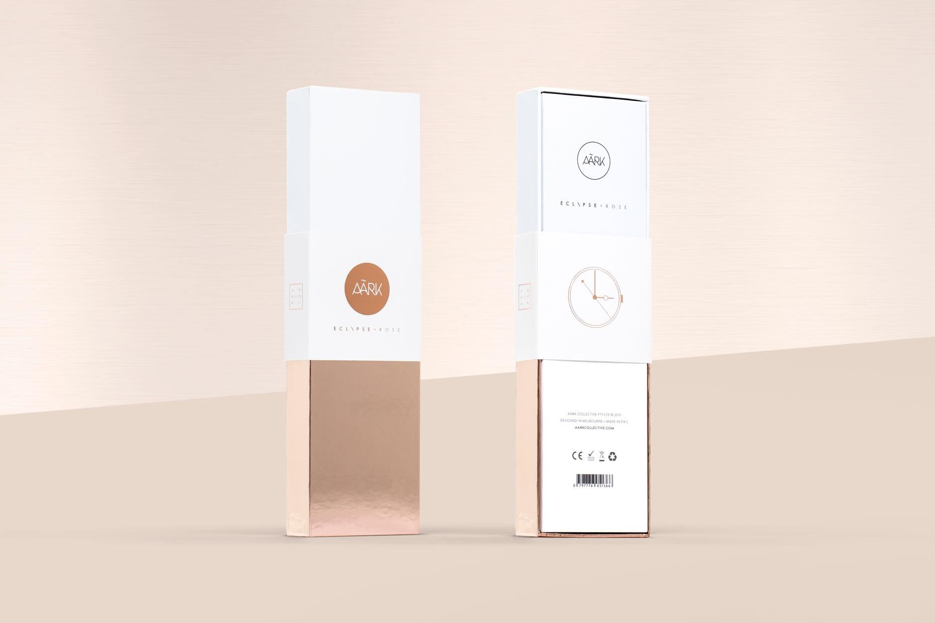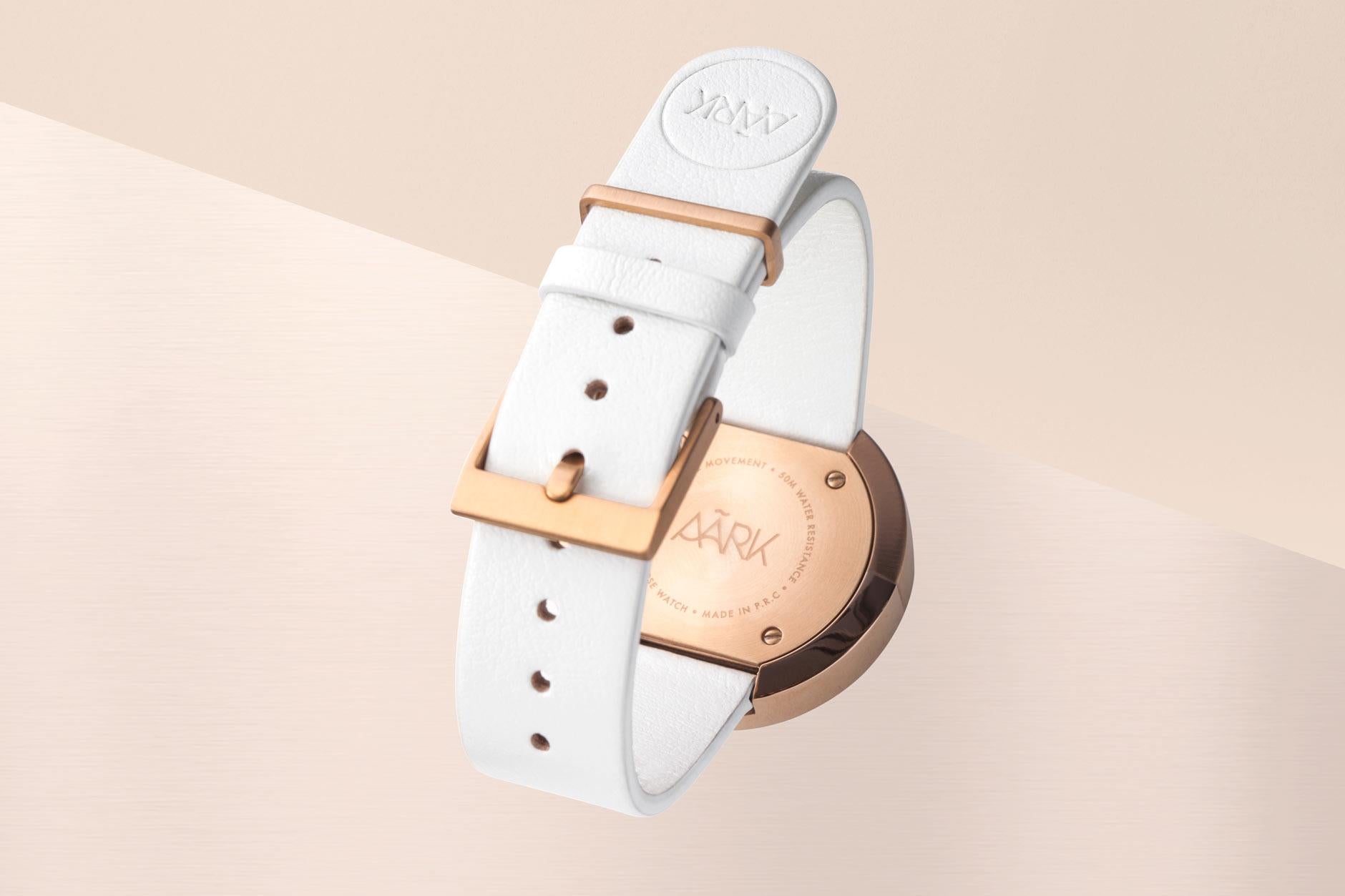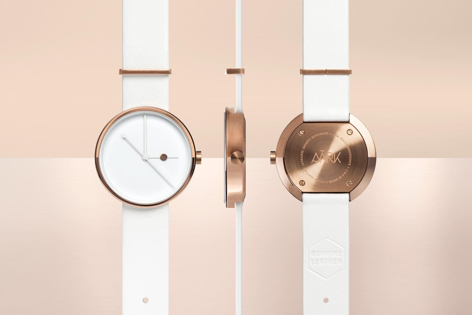 The Eclipse explores AÃRK’s relationship with time. Day and night are referenced in the dual-tone plating—hand-dipped in gold—while the simple, contrasting dial evokes the moon’s movement in relation to the earth and the sun.