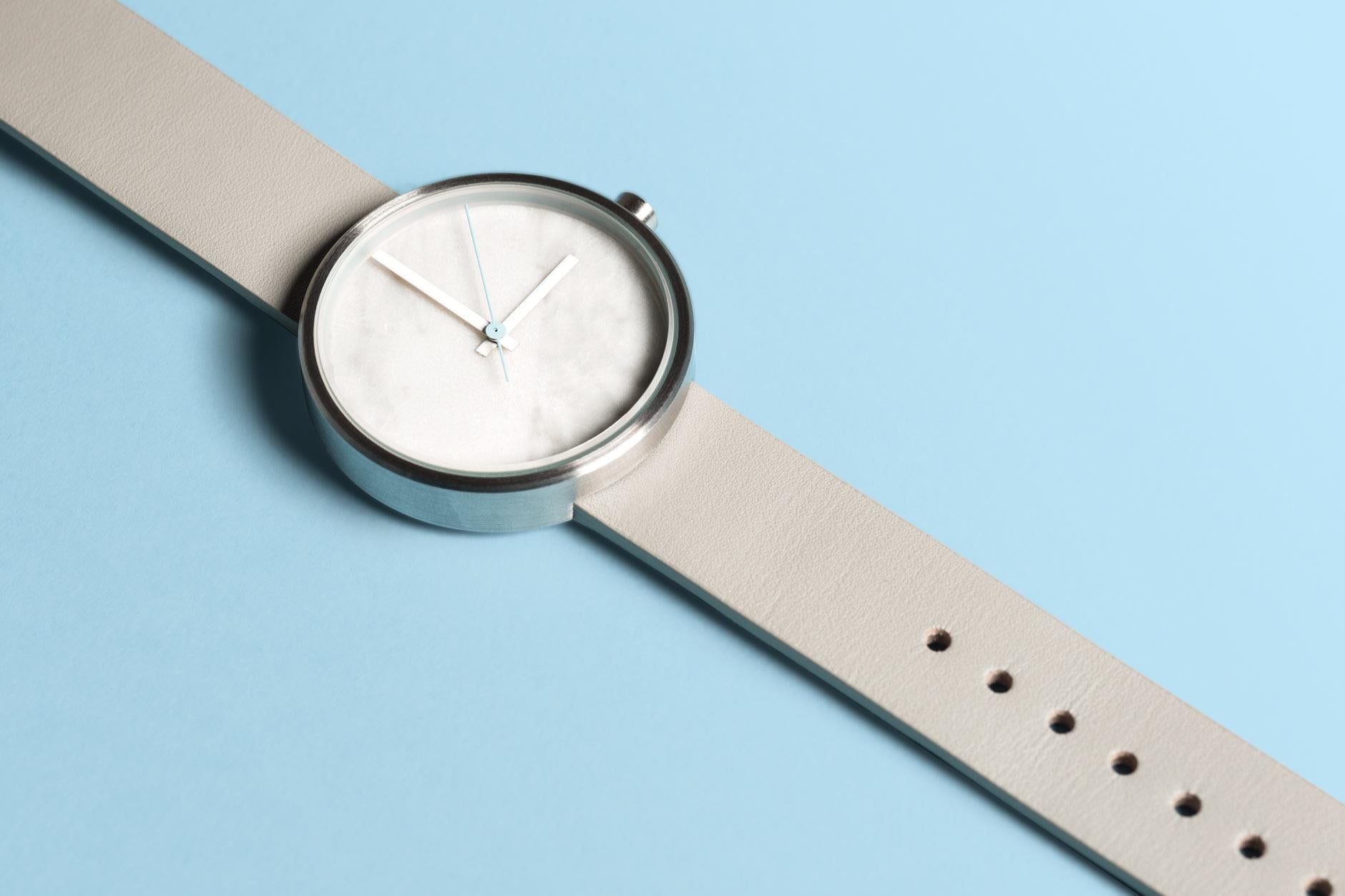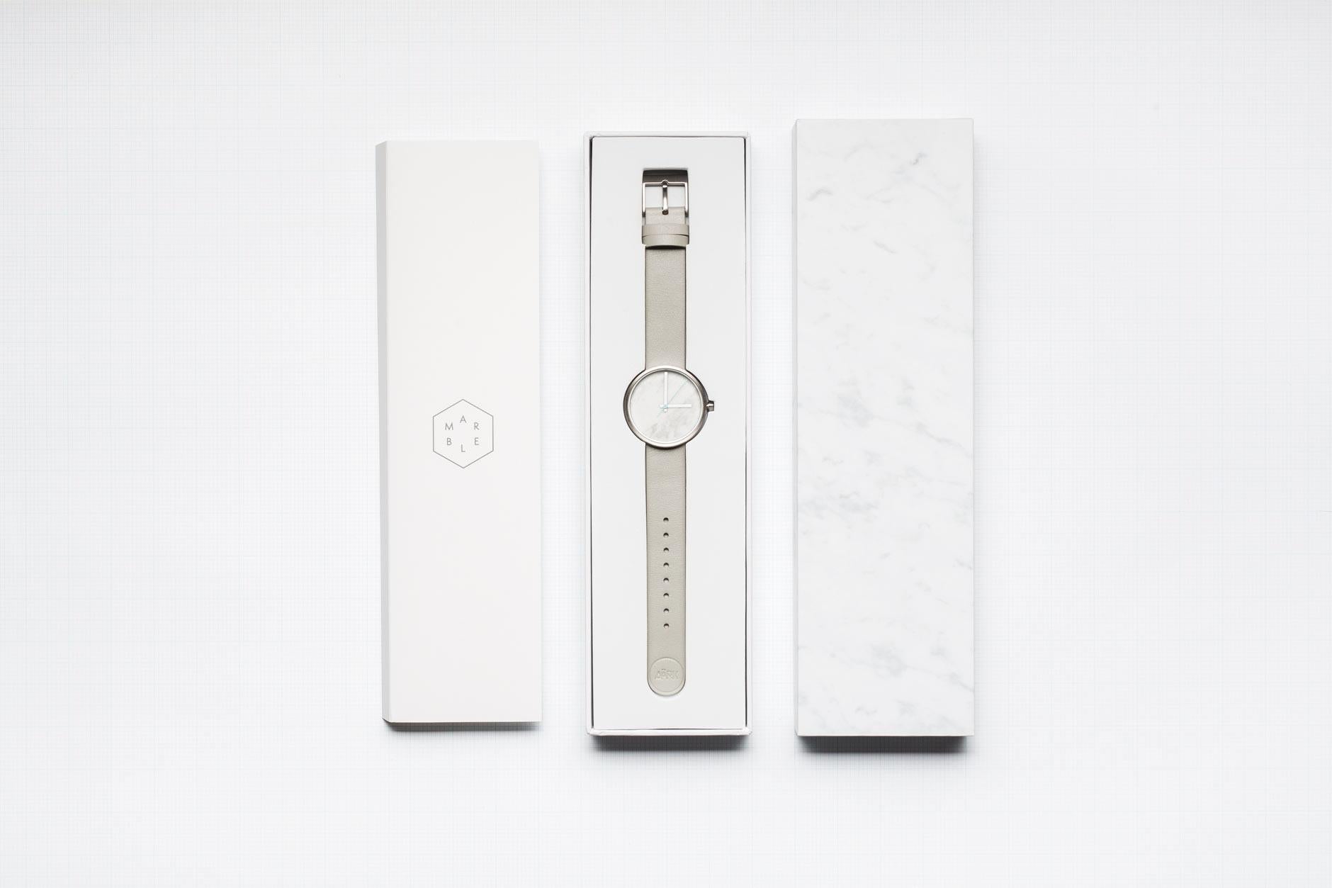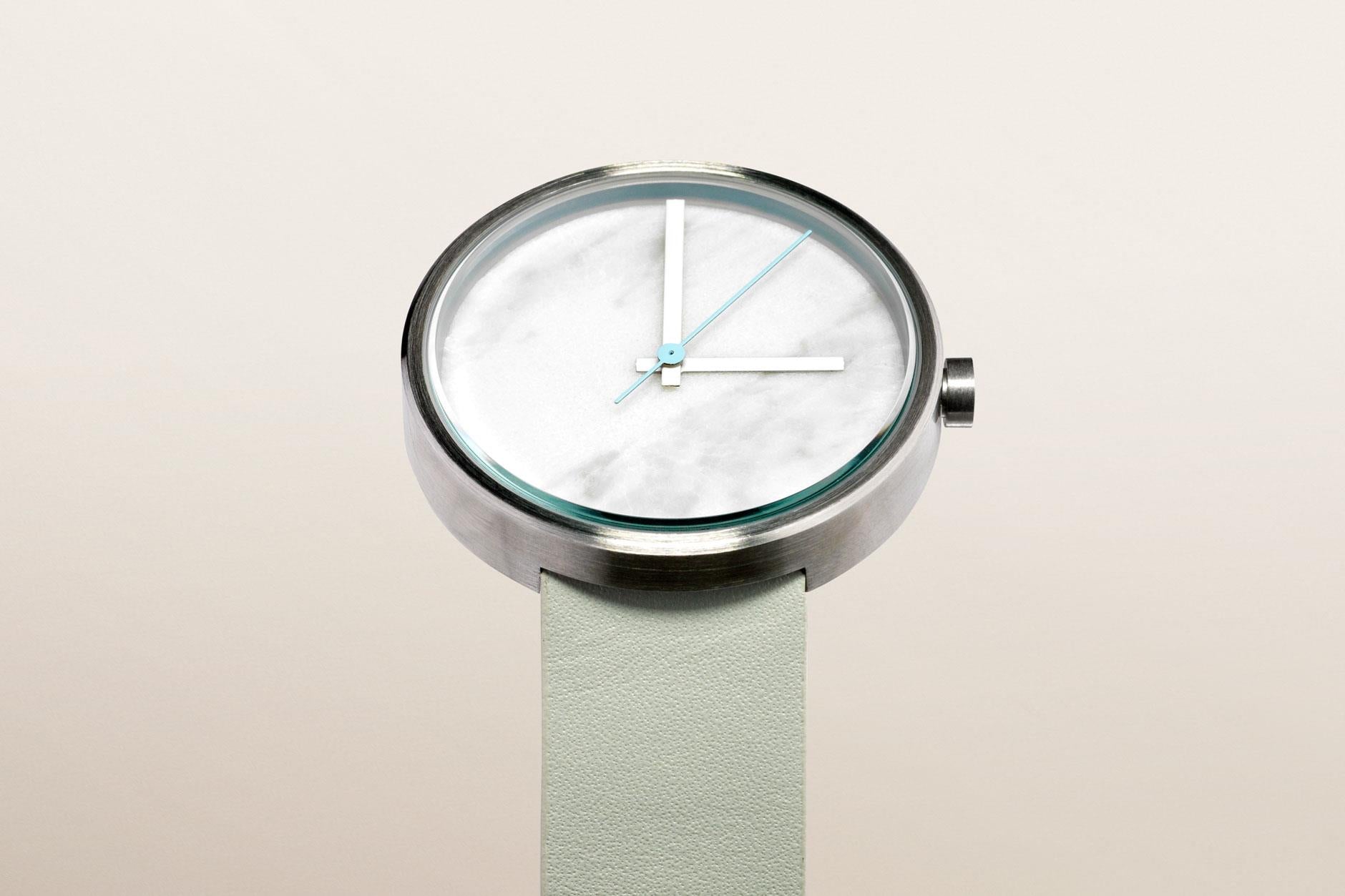 Featuring a thin layer of real marble enclosed in a pared-back stainless steel casing, the natural beauty of the material speaks for itself. Due to the organic nature of marble, each piece has unique patterning ensuring no two dials are the same.