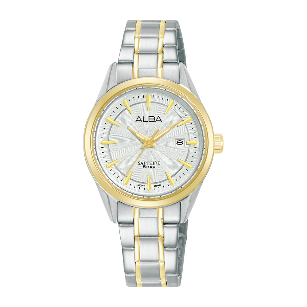 Designed for the modern woman who values both elegance and everyday functionality, this ladies’ timepiece features a refined silver-white patterned dial set in a sleek 29.5mm stainless steel case. The combination of a durable sapphire crystal and stainless steel side-wrapped bracelet offers both sophistication and strength. With 5-bar water resistance and a practical date display, this watch is perfect for daily wear, seamlessly blending style and performance.