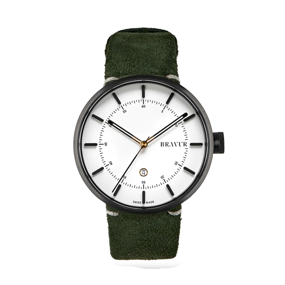 Bravur | BW002 - Black PVD / Olive Suede Leather