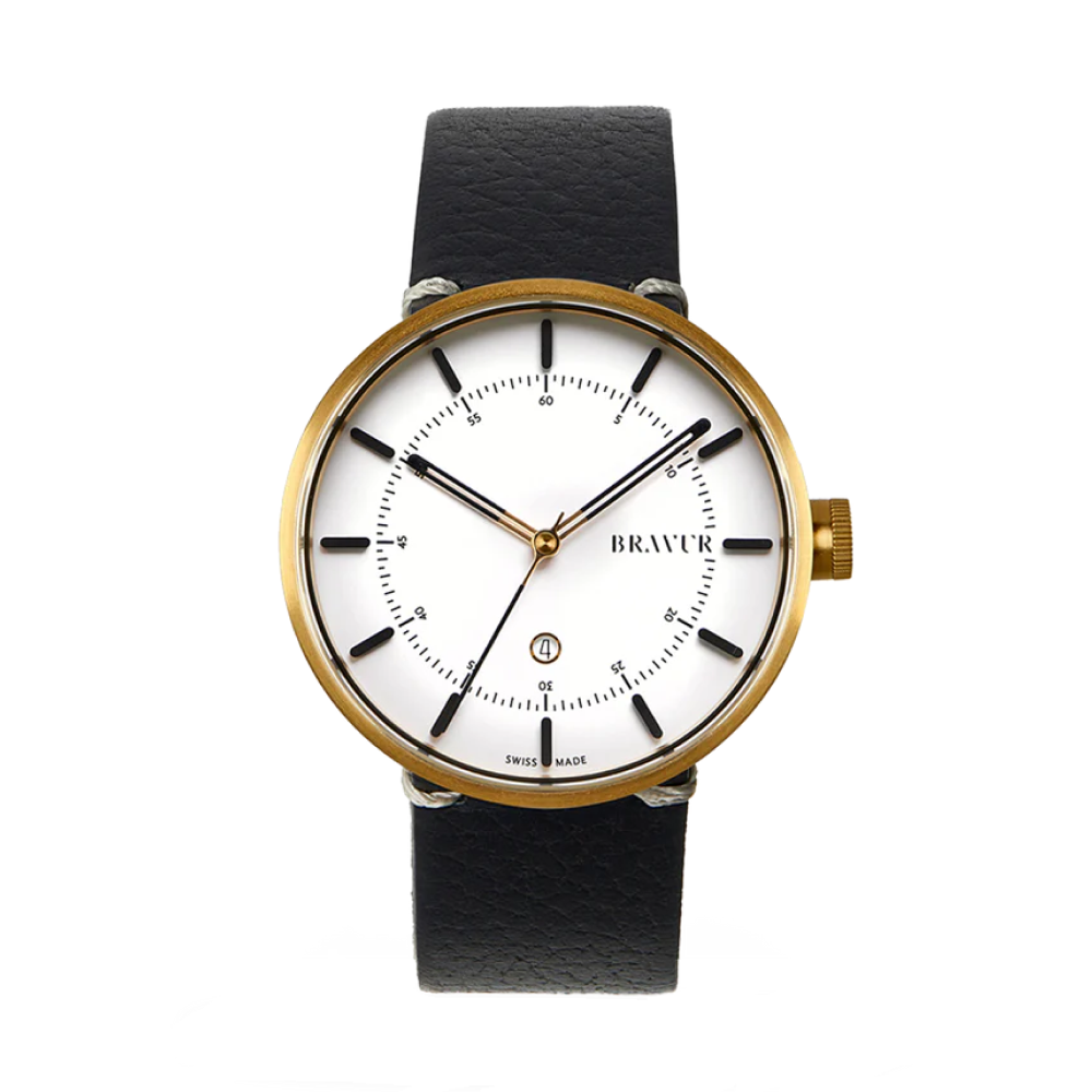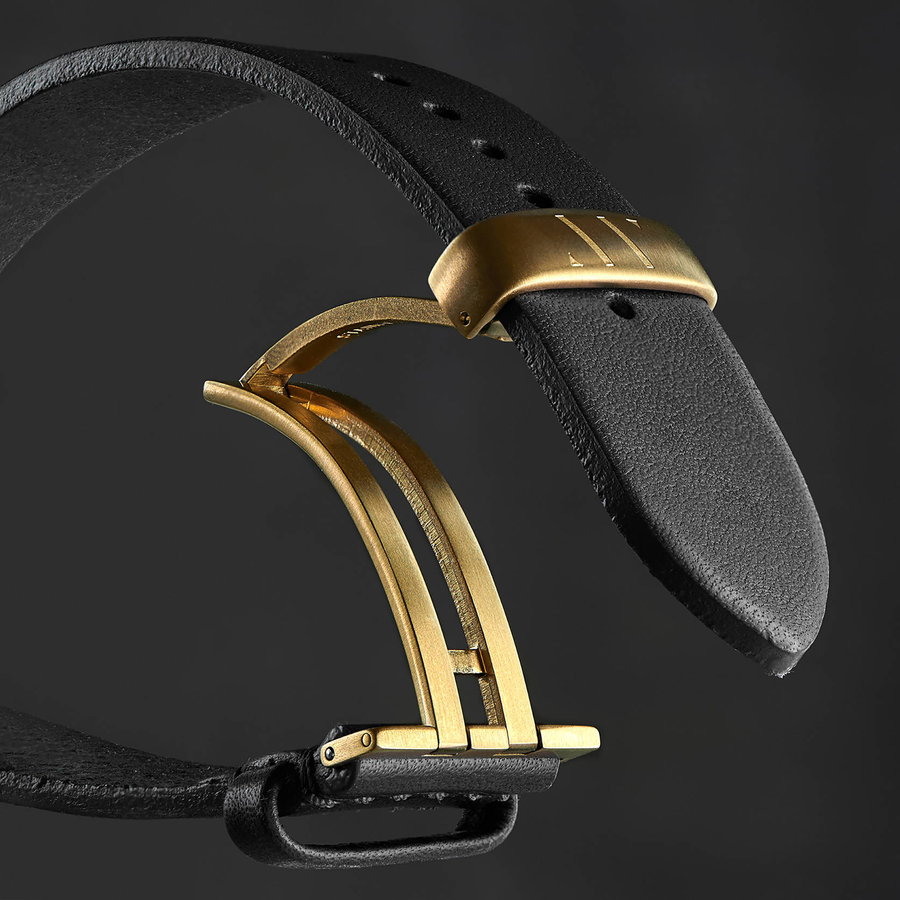 The BW002G in gold plated is a distinct expression of a luxurious timepiece with well balanced details. The design takes it starting point in a cylindrical shape, with a lugless case and a thin bezel surrounding the domed sapphire crystal. Every index is meticulously placed on the dial by hand. Applied hour indices with corresponding shape of the hands give the watch a pared-down elegance.