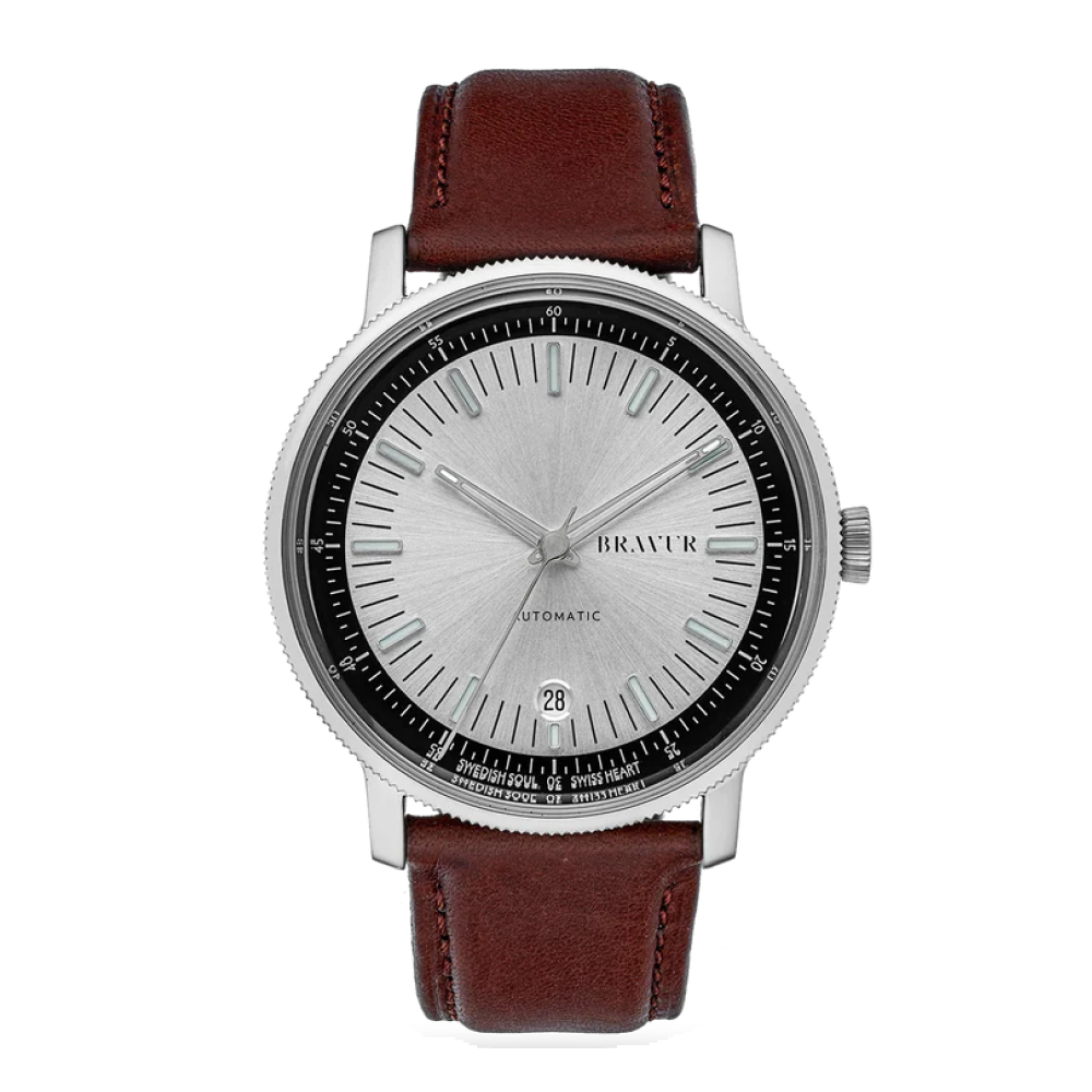 Bravur | BW003 - Silver / Brown Leather (Automatic)