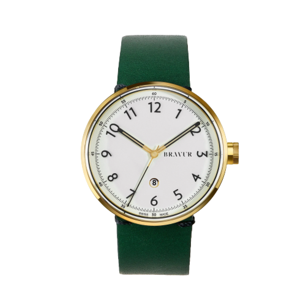 Exquisitely crafted using distinctive elements which represent the Bravur minimalist signature, the BW102 in gold plated is a contemporary interpretation of a classic dress timepiece. The hour, minute and second hands feature a two-tone colouration. The hands are gold towards the center, then matte black. This touch of gold in the center of the dial adds a luxurious glint of warm light, while the black jumps beautifully of the dial in contrast.