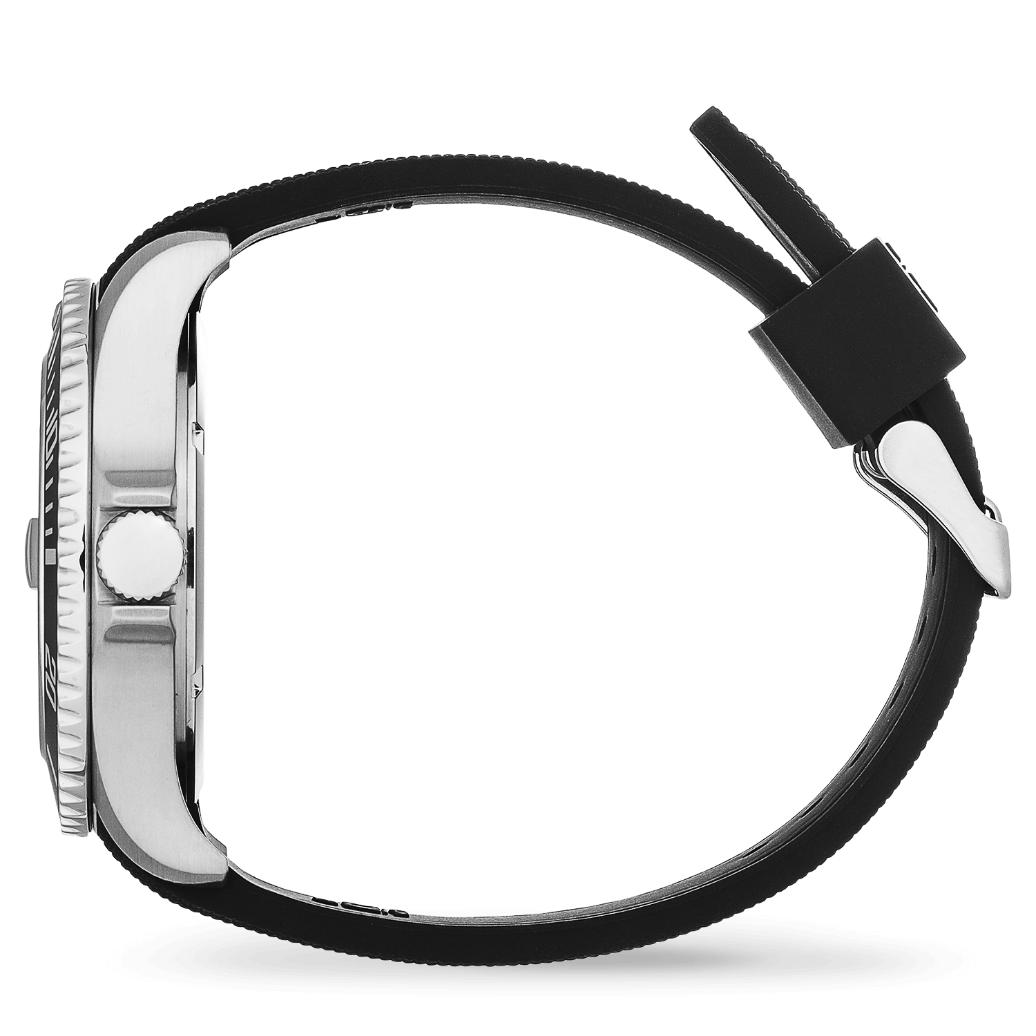With its flexible, textured, black silicone strap and its L graduated green steel dial, this watch is as modern as it is timeless. Assertive, it will perfectly complement any outfit, without ever going unnoticed!