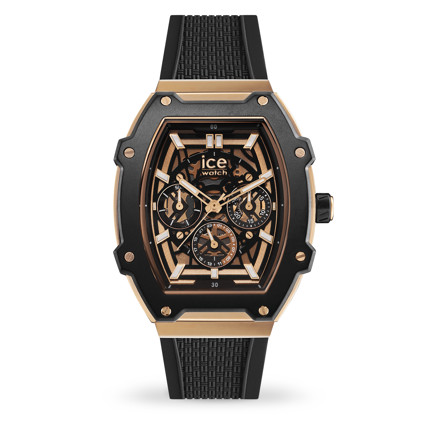 The ICE boliday - Black rose-gold skeleton steel is the choice of urban adventurers. With its rose gold steel case, matte black steel bezel and durable silicone strap, it combines strength and lightness. Its skeleton dial adds depth, making this watch an accessory that is as functional as it is aesthetic.