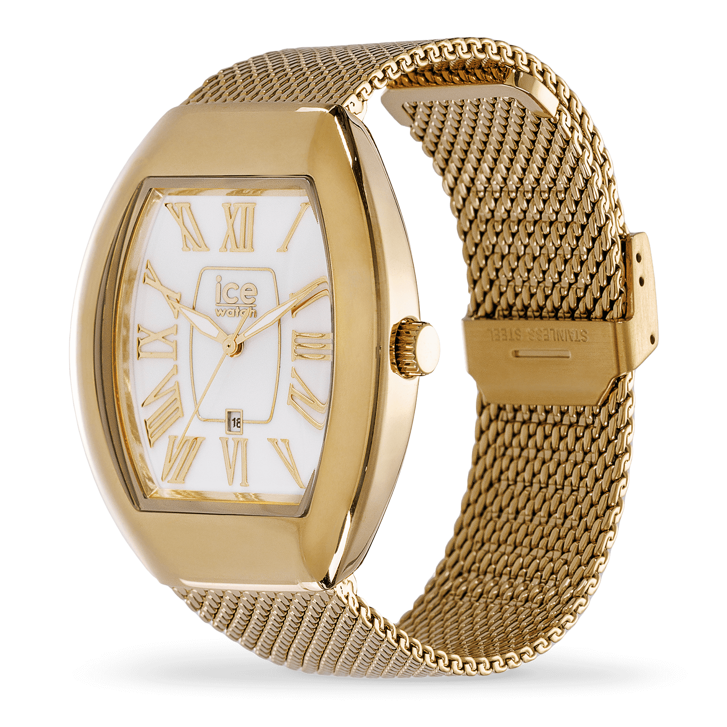 Fall for the delicacy and purity of the ICE boliday - Metal mesh White gold watch. Its metal mesh bracelet and luminous gold dial captivate with their finesse and elegance. Ideal for brightening up your days and evenings, this watch is the perfect ally for lovers of chic, minimalist design.