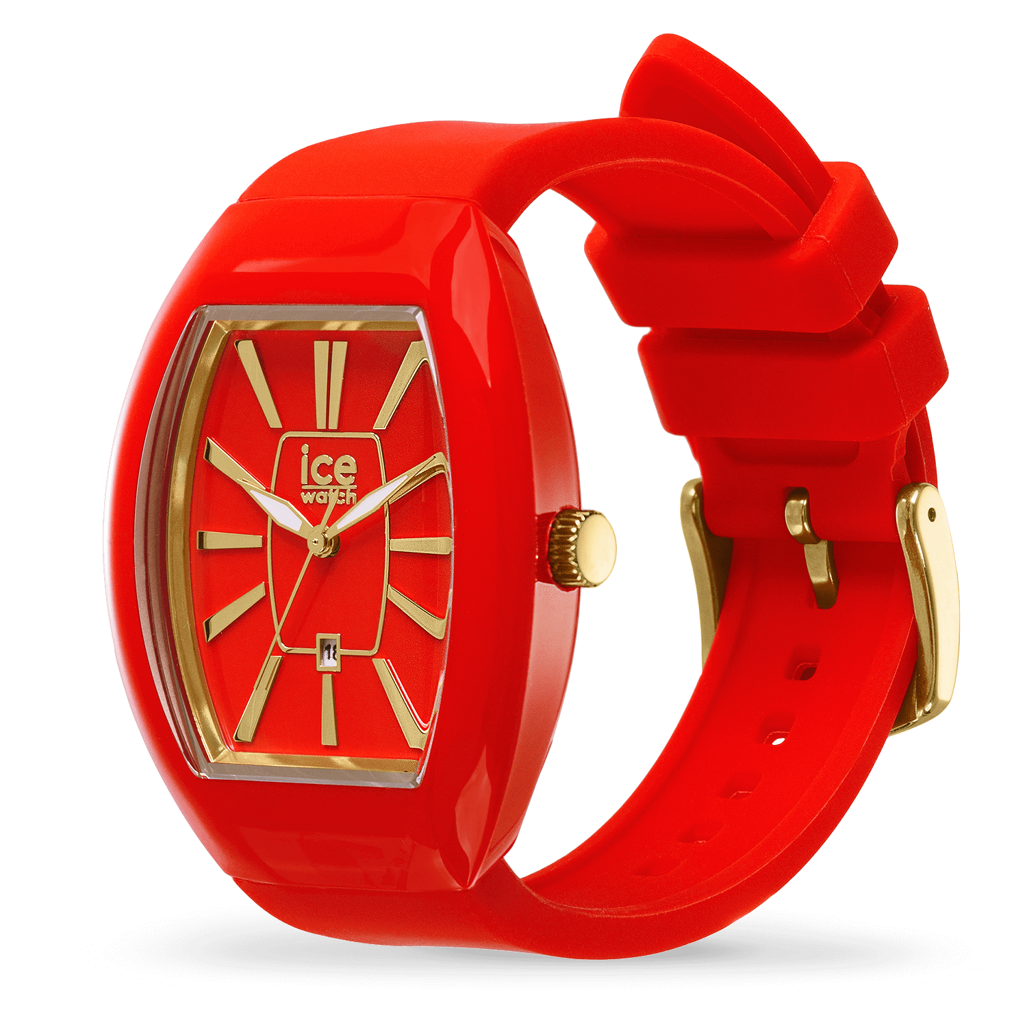 A vibrant deep red to accompany your most chic outfits: discover the ICE boliday dome - Red gold. Its vibrant red silicone bracelet offers exceptional softness and comfort on the wrist. This neutral yet assertive color will complement all your outfits!