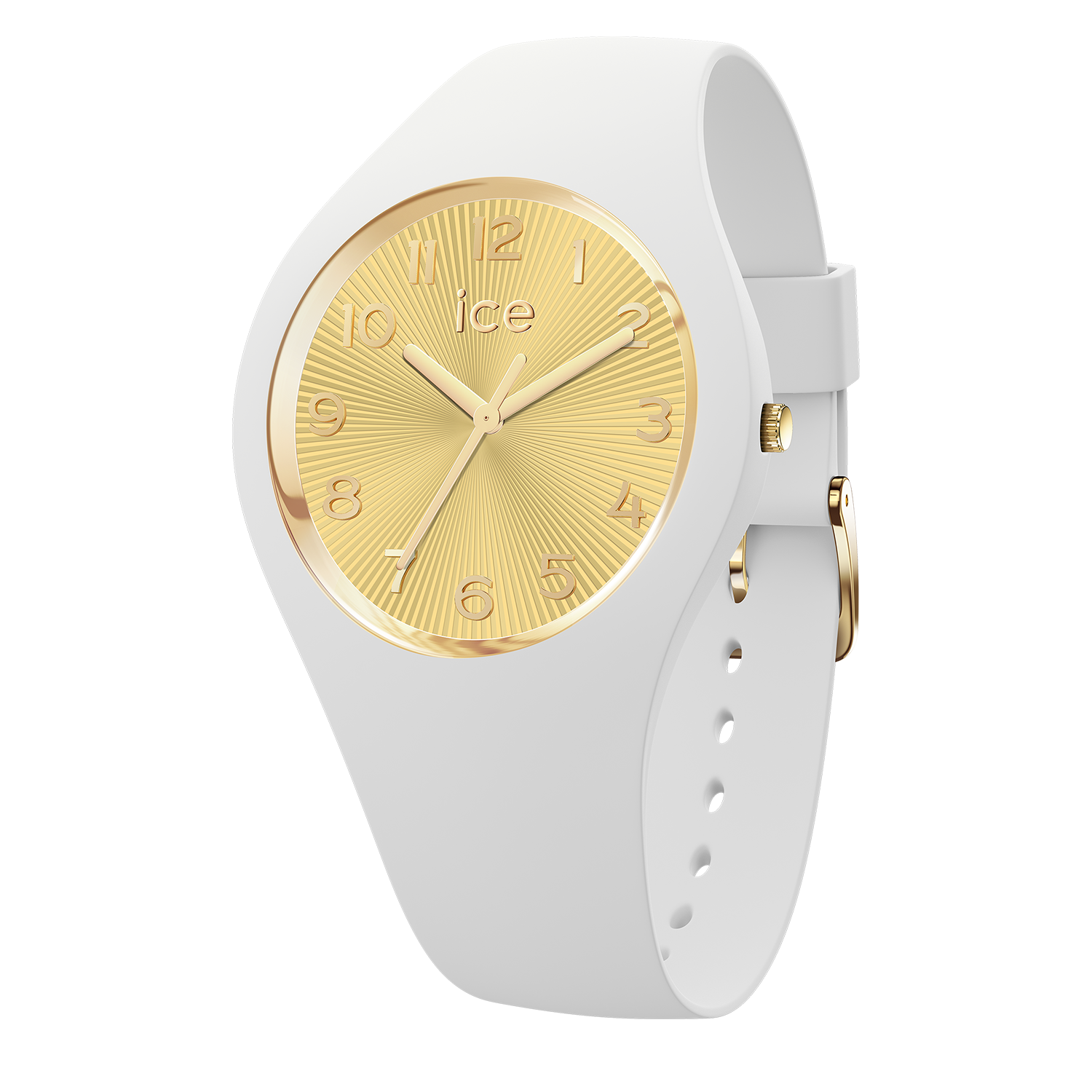 It's time to shine with the ICE champagne - white gold! This precious case, so simple yet so trendy, will dress up any outfit and magnify your look, enhanced by its golden bezel, hands and numerals that underline every nuance with elegance. Without a doubt, a timeless timepiece!