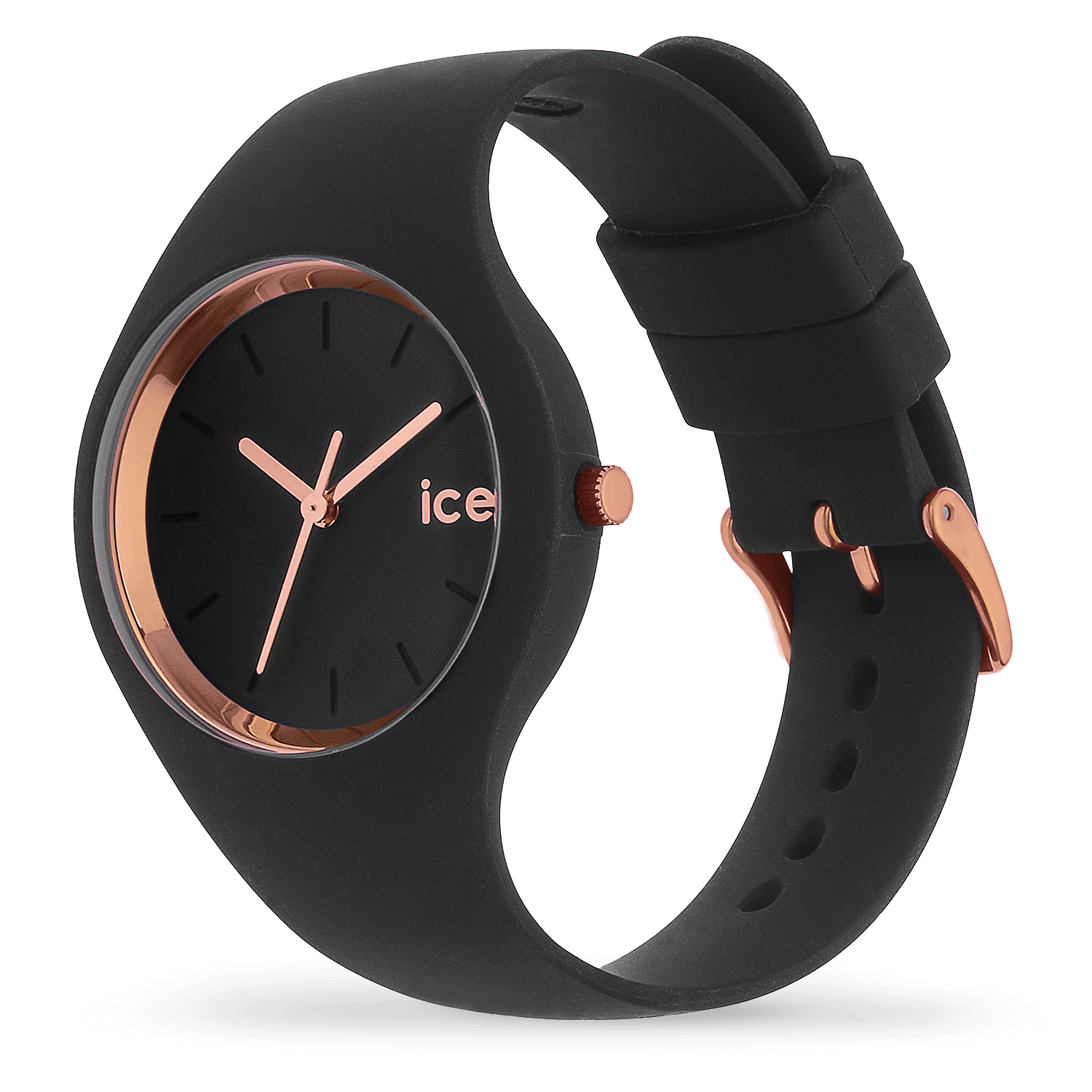Glamour and sobriety in all simplicity with the ICE glam - Black Rose-Gold. The contrast between black and rose-gold elements brings a refined elegance. The silicone strap, soft and comfortable, adapts to all occasions, adding a touch of sophistication to your everyday style.