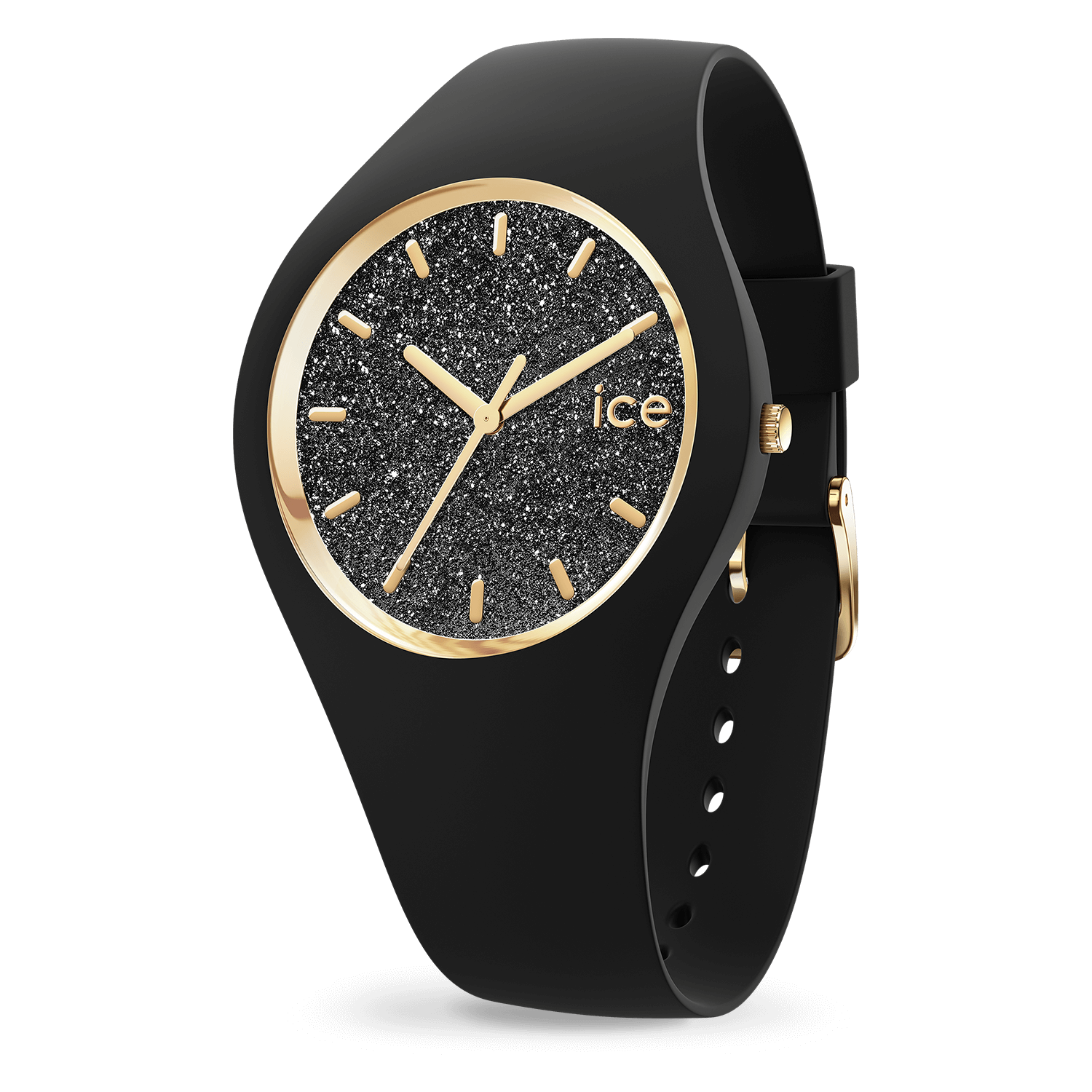 It's time to glow with the ICE glitter black watch! This intense, silky and ultra-soft black strap watch is adorned with a beautiful black and gold dial filled with metallic sequins. Elegant, festive and luminous; this watch is the perfect accessory to stand out in a sophisticated way.