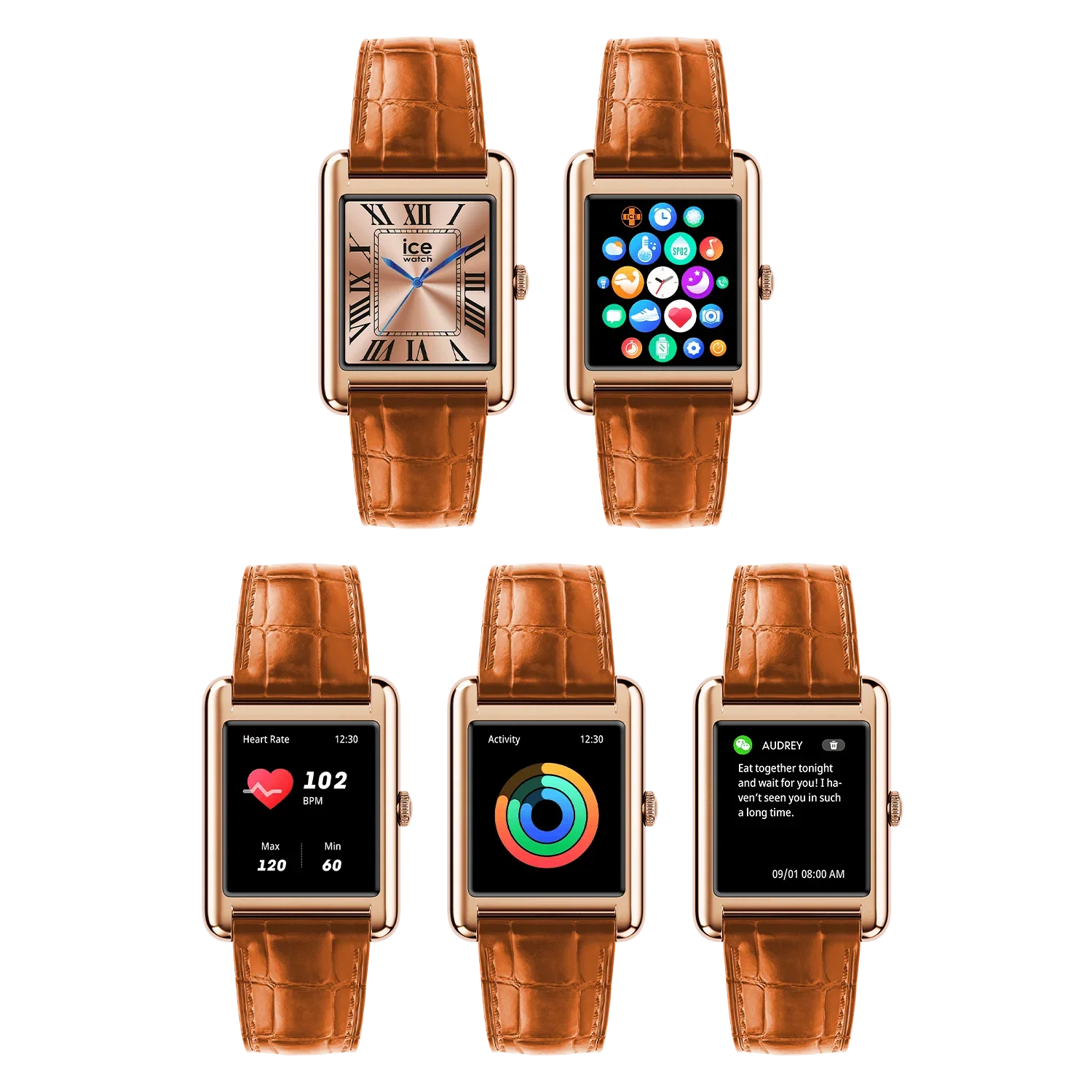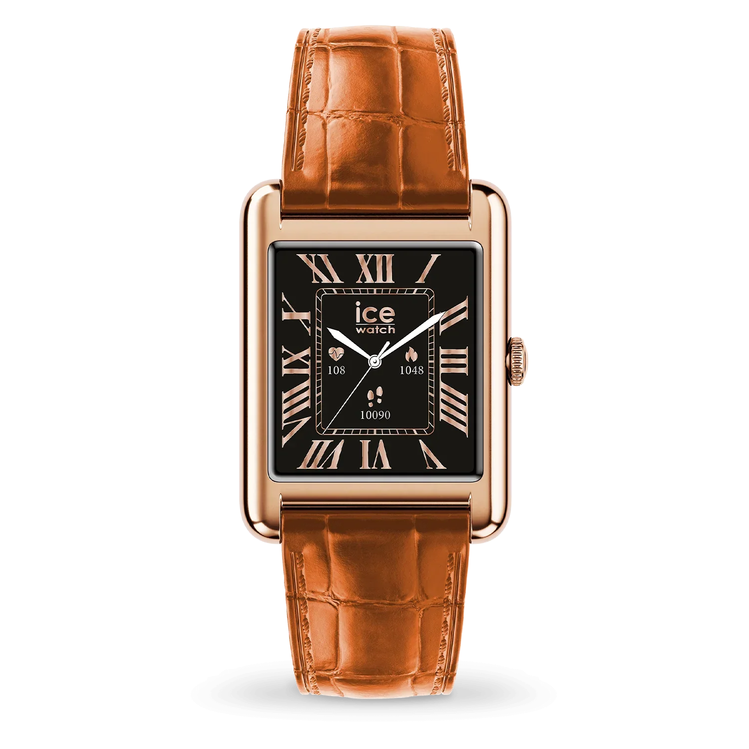 Elegance meets innovation with the ICE smart TKS 2.0 Rectangular – Rose Gold Cognac.