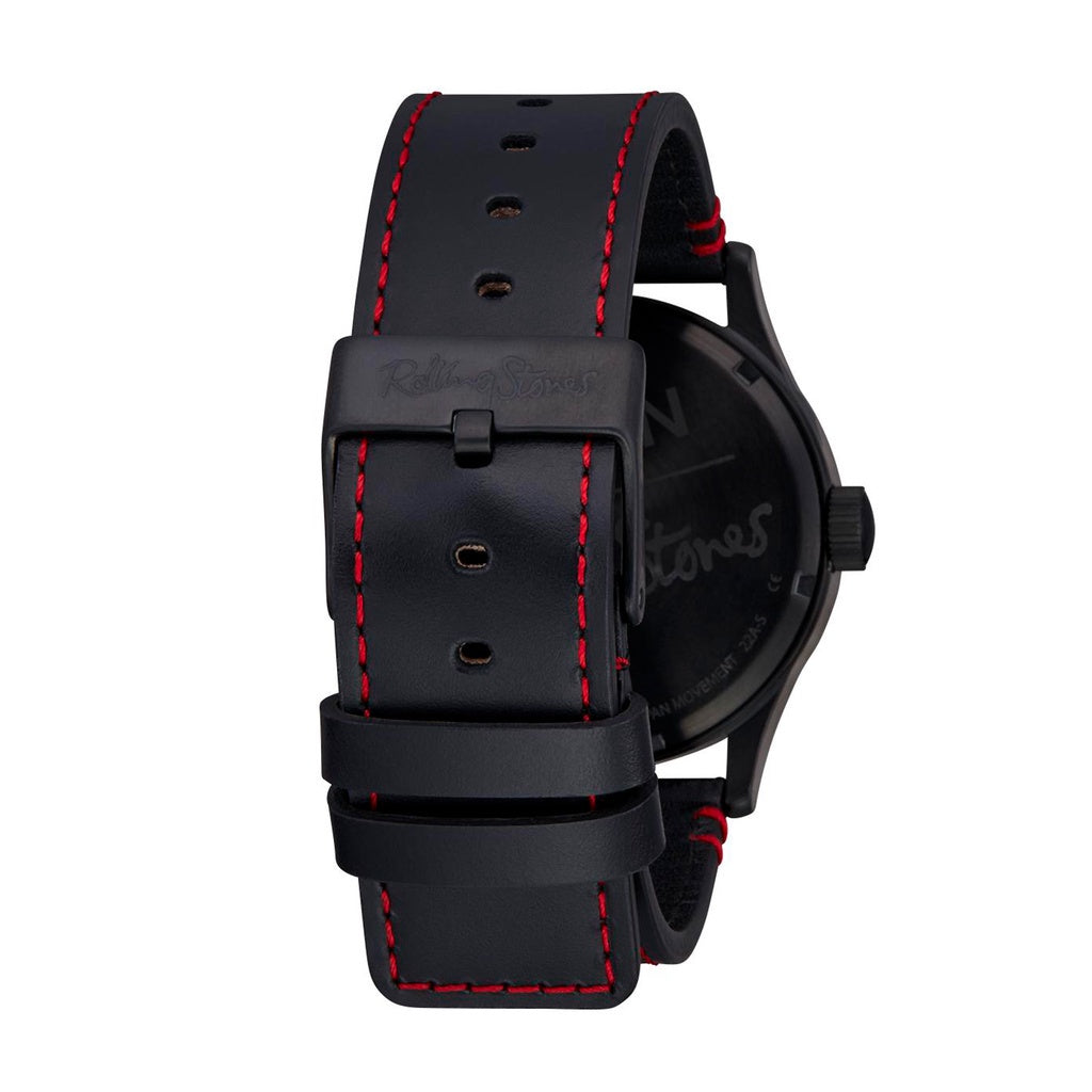 The Sentry Leather is a best-selling timepiece, merging a black tie meets block party aesthetic in a way that is uniquely Nixon. For this collaboration, this watch received an all-black treatment to their faces, with the Stones' classic Tongue logo popping at the 12 o'clock mark. Black leather bands with red stitching on their edges keep everything in check.
