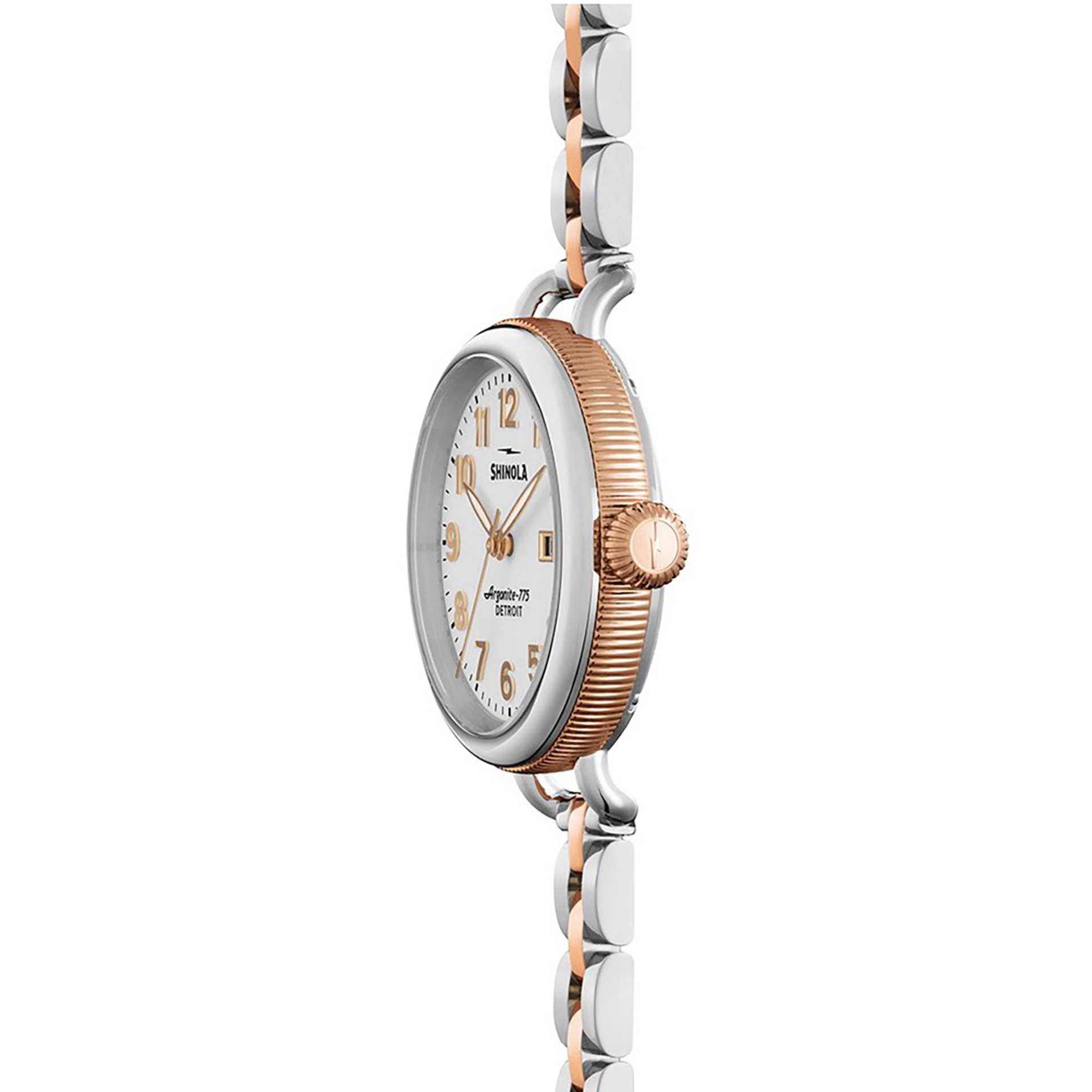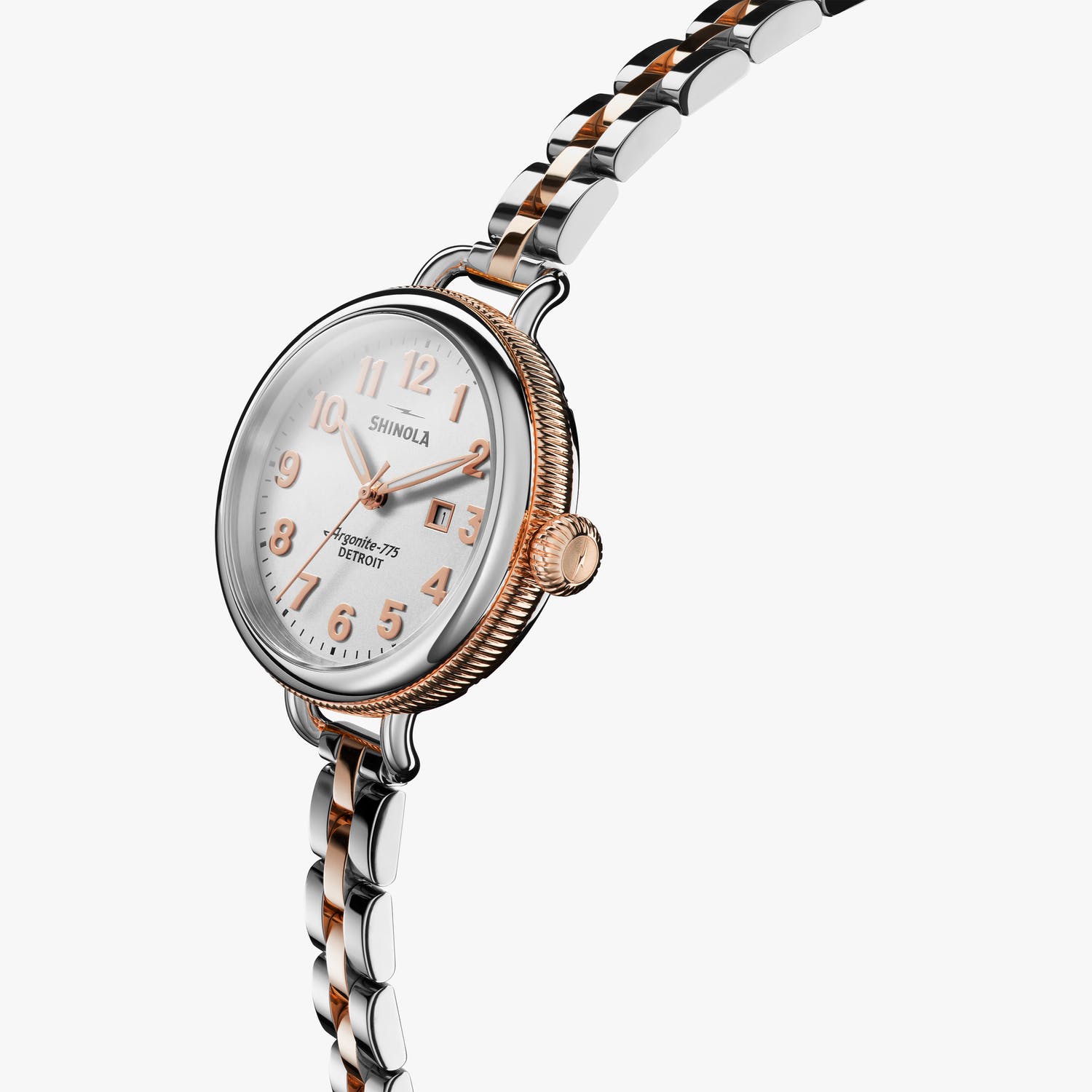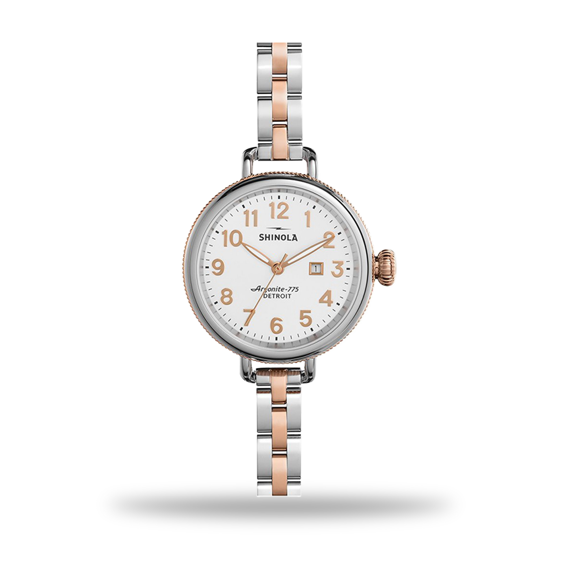 The Birdy has the world on a string. This playful, yet powerful evolution of a classic is in a size suited for smaller wrists and features all the signature Shinola details like a bold dial in coin edge bezel, in PVD rose gold, and wire lugs. Dainty and delicate, sharp and strong, this watch is proof pretty little things can make pretty big statements.
