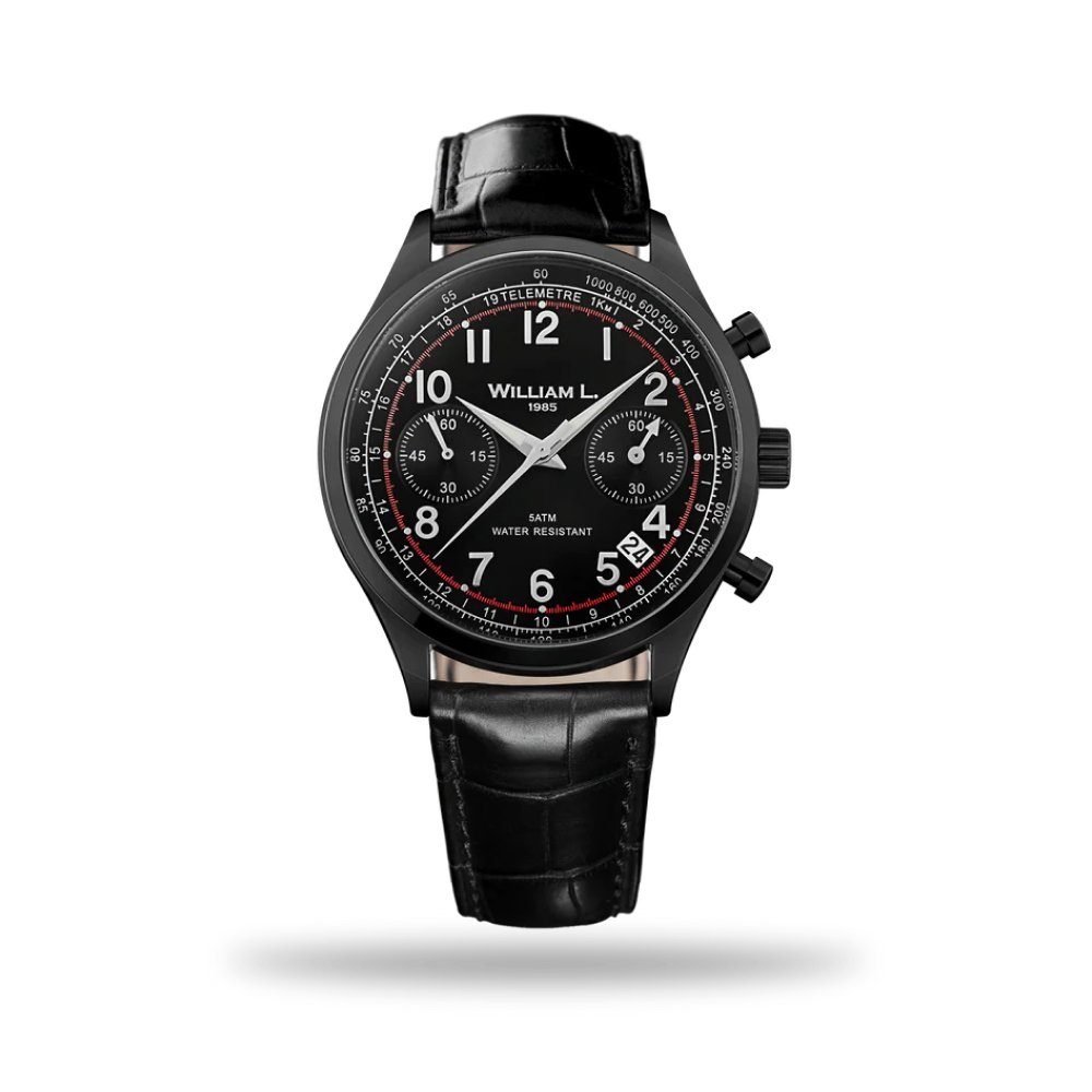 William L. 1985 | Vintage Style Chronograph - IP Black Dial & Black ‘Croco’ Strap